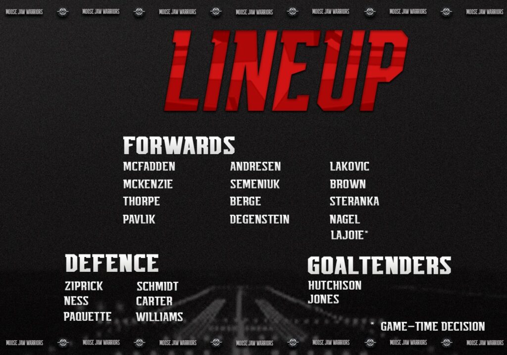 For the Warriors Matthew Hutchison made 31 saves on the 35 shots that he faced. For the Rebels Chase Wutzke made 11 saves on the 15 shots that he faced until being replaced at 9:24 of the second period by Peyton Shore. Shore then stopped 6 of the 7 shots that he faced.