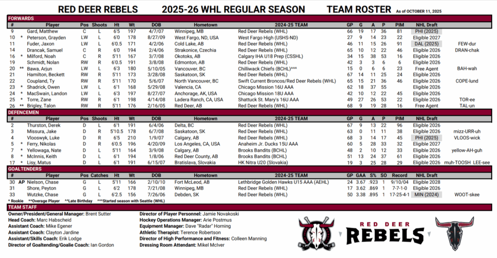 Anchorage, Alaska native Landon MacSwain gave the Rebels a 2-0 lead at 10:40 of the second period when he got his first WHL goal. The assist on the goal went to Beckett Hamilton.Red Deer doubled their lead at the 10:40 mark when Landon MacSwain wired home his first ever goal in the WHL to five the Rebels a 2-0 lead; Beckett Hamilton picked up the assist on the goal.