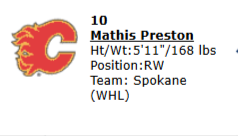 “He has speed to burn as he’s always in motion, showing great edges and footwork to be deceptive with his movements. He always has defenders on their heels as he pushes them back when flying down the wing or out of the corners.”- “Preston is so good with the puck on his stick and he plays with high-end speed – something many teams struggle to contain. He had a solid 45-point regular season, but he really came into his own near the end of the year.”-LINK