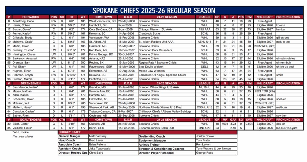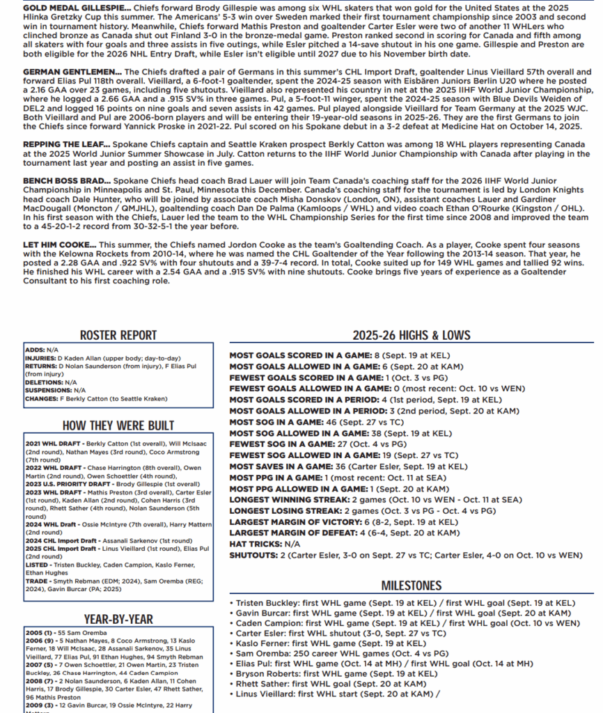 For the Chiefs German Linus Vieillard the Chiefs selection, the 57th overall pick in the 2025 CHL Import draft made 22 saves on the 24 shots that he faced for the win for the Chiefs. For the Rebels Chase Wutzke made 18 saves on the 21 shots that he faced.