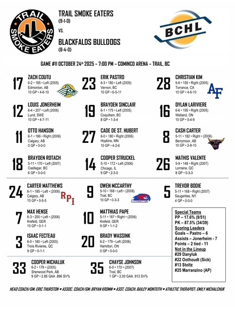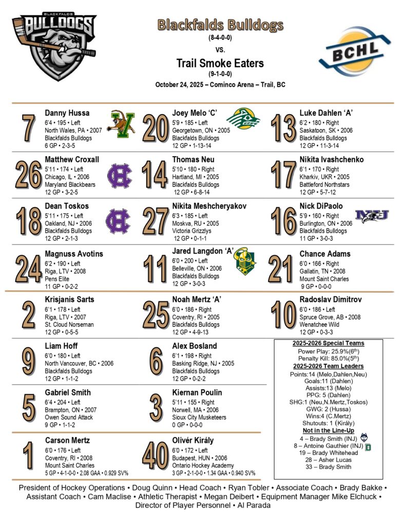 Bulldogs next game is Saturday October 25th in Cranbrook against the Bucks