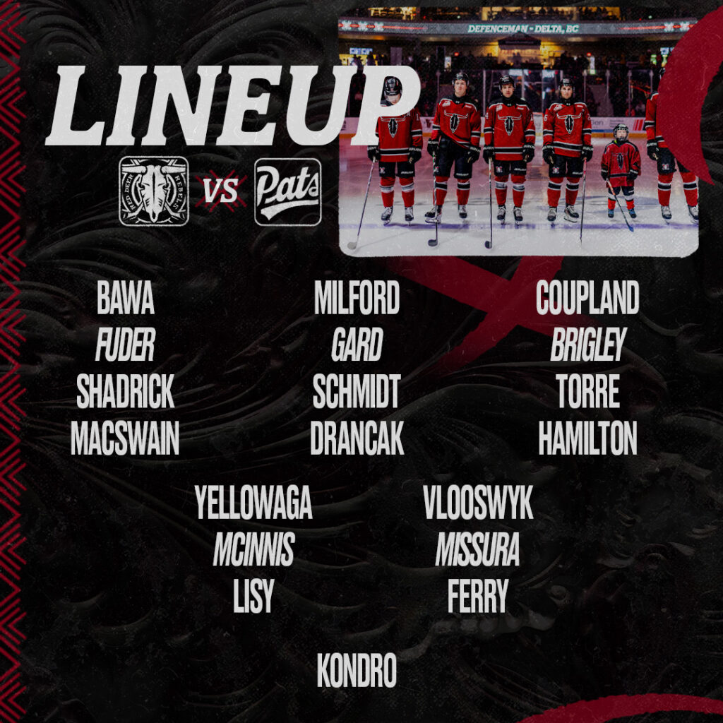 Former Everett Silvertip Julien Maze gets the Pats on the board first at 4:01 of the first period while on the Power Play. The assists on the goal went to Caden Brown and Red Deer native Ephram McNutt.–Entering the zone on the man advantage, McNutt bumped the puck to the slot where Maze made a nifty move and buried a backhand to open the scoring.