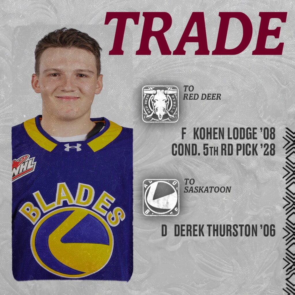 Link to article. The Rebels have acquired 17-year-old forward Kohen Lodge from the Blades, along with a conditional fifth-round pick in the 2028 WHL Prospects Draft, in exchange for 19-year-old defenceman Derek Thurston.
