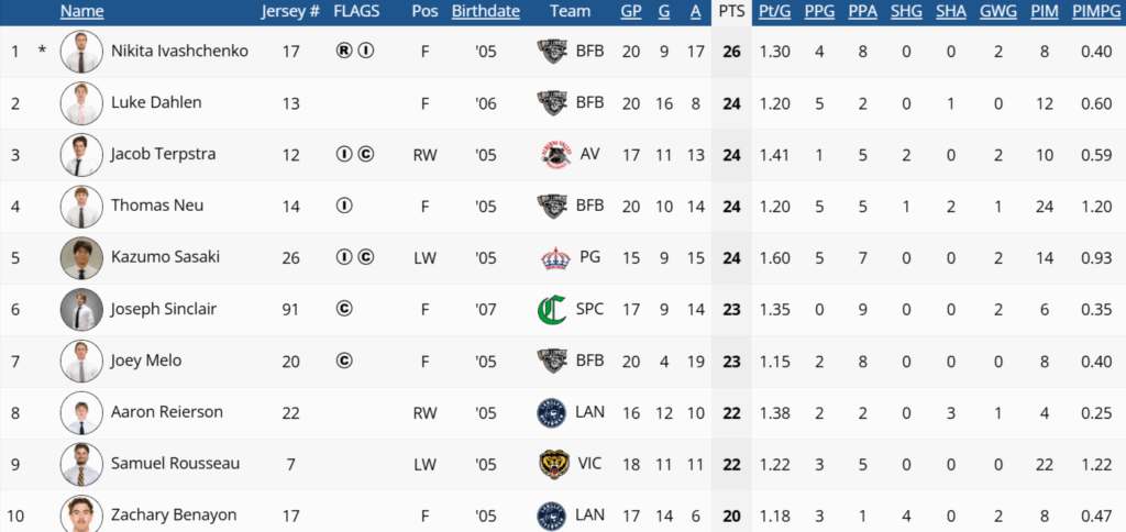 Bulldogs won their 7th game in a row Friday night Smoking The Okotoks Oilers 9-1. The Bulldogs are in first place in the league. Point wise. The Bulldogs have played 3 more games than most teams in the league. Percent wise right now the Bulldogs are in fourth. Couldn’t get a roster sheet for the Oilers as they have not updated their twitter since Nov 11th for some reason. Brady Smith (defenceman) also made it back into the line up after recovering from injury. He has been sidelined since last March.