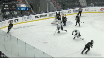 Matthew Croxall makes it 3-2 1:42 into the third period with the assists on the goal going to Alex Bosland and Carson Mertz.
