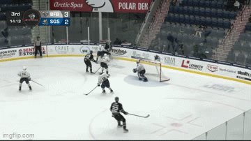 Luke Dahlen then fires it into the empty net making it a 6-3 Bulldogs game at 19:21 of the third period unassisted. That is Dahlen’s 19th goal of the season.