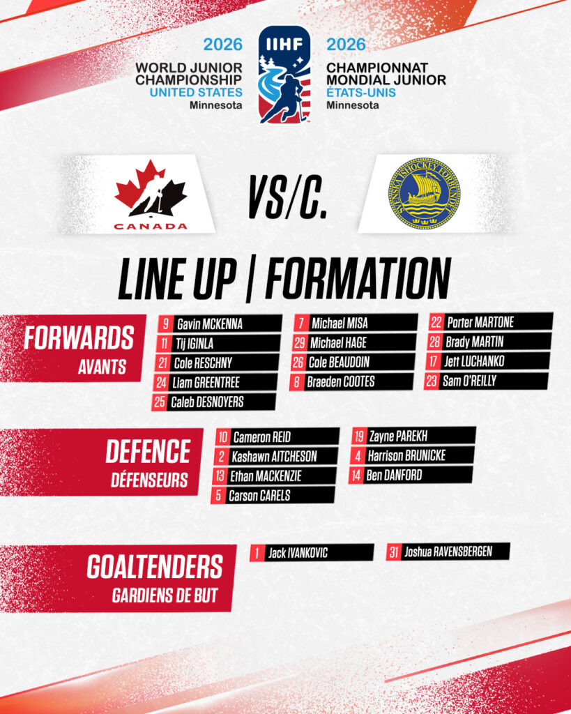 Canada’s next game is Tuesday December 23rd against Denmark.