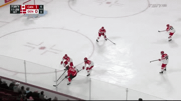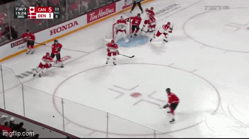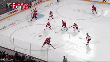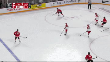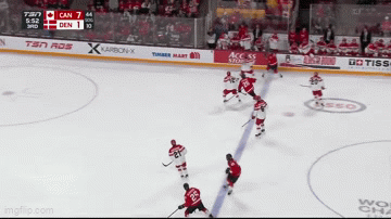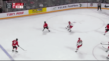 Shots on goal in the third period were 18-7 for Canada. Canada outshot the Danes 49-13 in the game.
