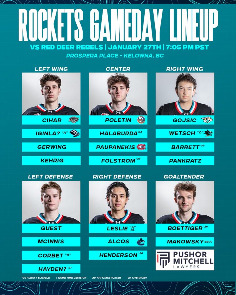 Rockets make it 3-1 on the Power Play, their first goal of the double minor at 3:01 of the second period with the goal going to Montreal Canadiens 2025 third rounder Hayden Paupanekis. The assists on the goal went to Vojtech Cihar and Mazden Leslie.