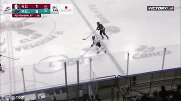 Nate Yellowaga did a Bobby Orr impression walking in solo through most of the Rockets team on the Power Play and got the Rebels some life at 14:17 of the third period. Unassisted.Rebels get one back—Yellowaga goes coast-to-coast, weaves past four defenders and beats the goalie clean for his fifth of the season at 14:17 in the third.