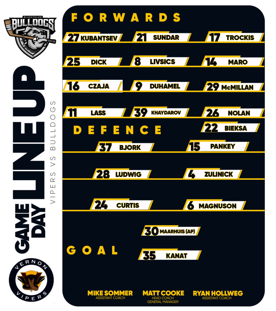 Bulldogs next game is Friday February 13th in Blackfalds against the Sherwood Park Crusaders.