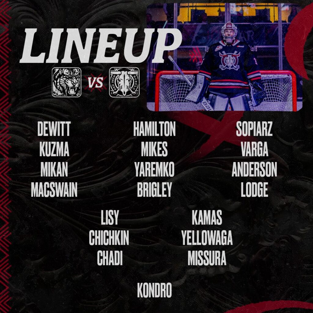 Belarusian Yaroslav Bryzgalov ties the game back up for the Tigers at 1:52 of the third period with the helpers on the goal going to Winnipeg, Manitoba native Jonas Woo and Whitehorse, Yukon native Luke Cozens. The later 2 have both had brothers who were stars in the WHL many moons ago.–Yaroslav Bryzgalov scored with a shot from the top of the circle to beat Kondro for his eighth of the season. Jonas Woo and Luke Cozens had the assists.