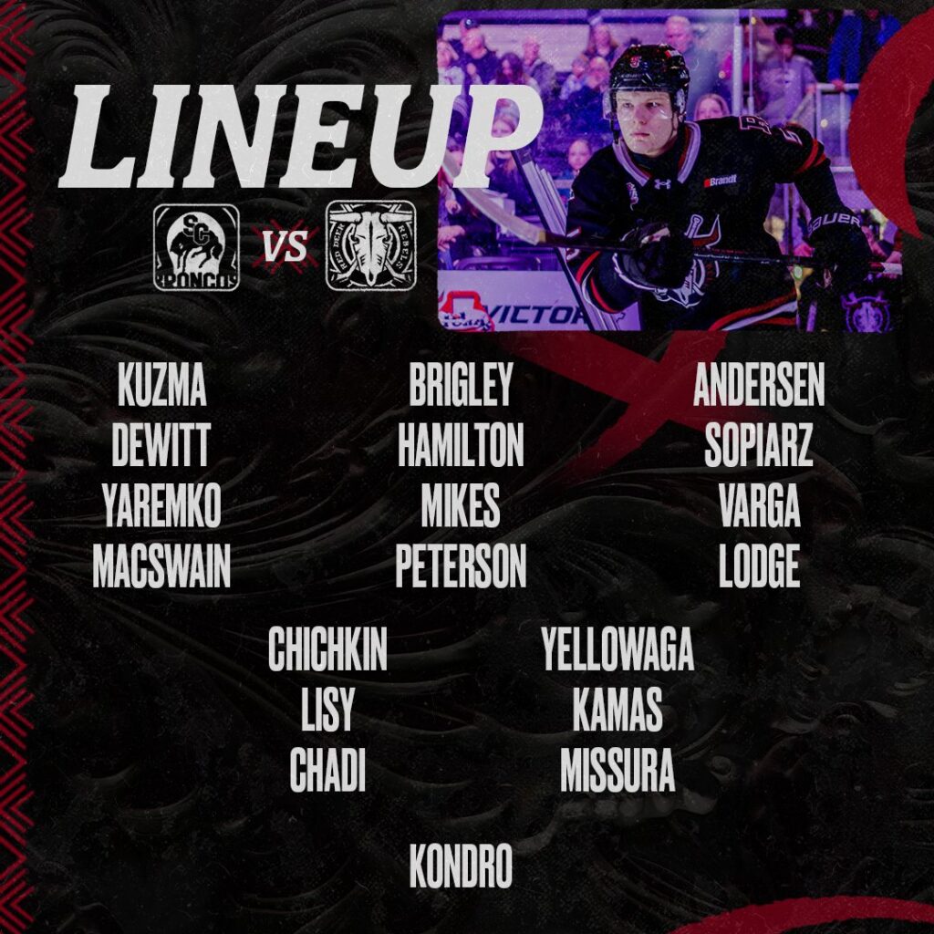 Former Portland Winterhawk and Swift Current native Hudson Darby gets the Broncos on the board first at 10:29 of the first period with the assists on the goal going to Trae Wilke and Richmond, BC native Nathan Gray.