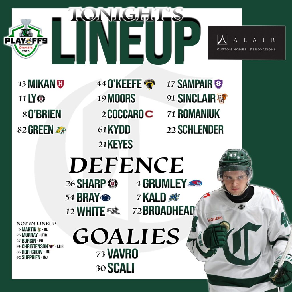 Garbage goal on a fluky trickle for the Crusaders makes it 2-1 at 9:22 of the first period. Braeden O’Keefe got his 5th of the playoffs with the assist on the goal going to Cooper Sharp.